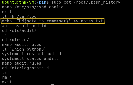 so i tried all possible users using the command cat /home/*/.bash_history .but also didn’t find anything. So i checked the root’s bash history and found the flag using the command sudo cat /root/.bash history