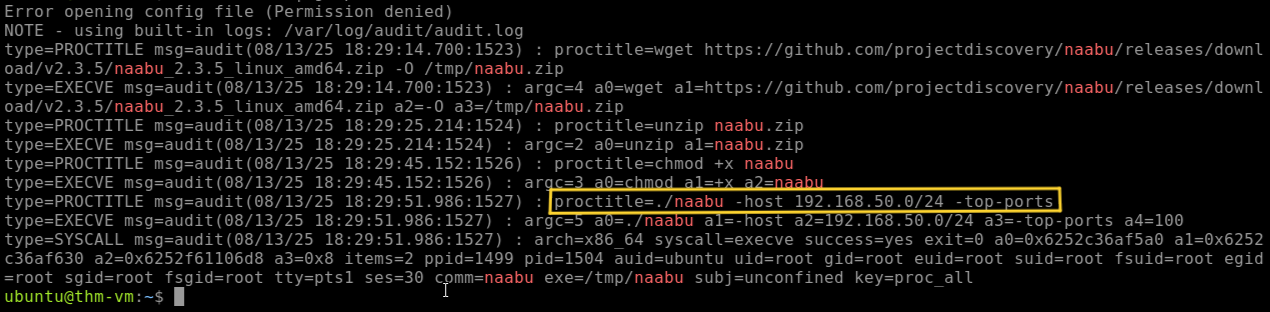 So i searched for it using the command ausearch -i | grep naabu and found the network range.